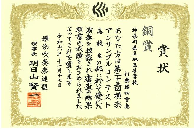 今年度の定期演奏会は,横浜旭陵高校と合同で行いました。横浜旭陵高校との合併は令和9年度からですが,吹奏楽部は一足先に,合同で活動を行っています。演奏会に足を運んでいただき,誠にありがとうございました。今年来られなかった方は,ぜひ来年はお越しください。お待ちしております。