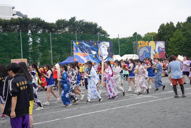 各軍が作りあげた見事なデコが、頑張る生徒たちを後ろから支えているようでした。