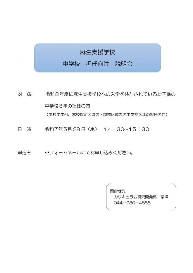 麻生支援学校 > 入学希望者の方へ > 中学校担任向け学校説明会