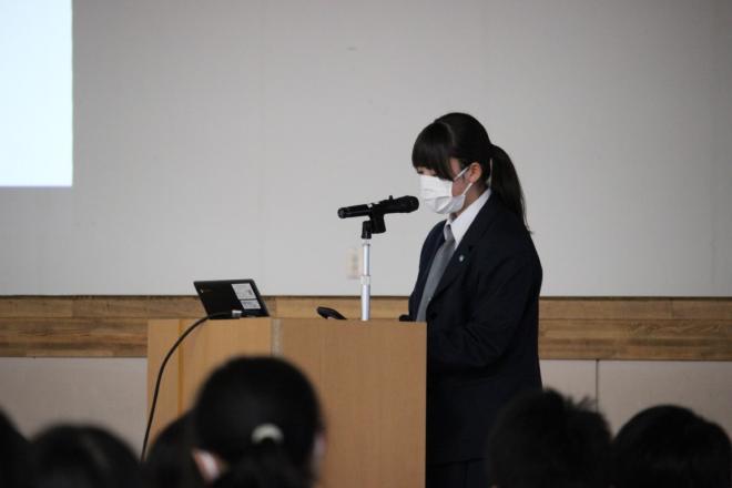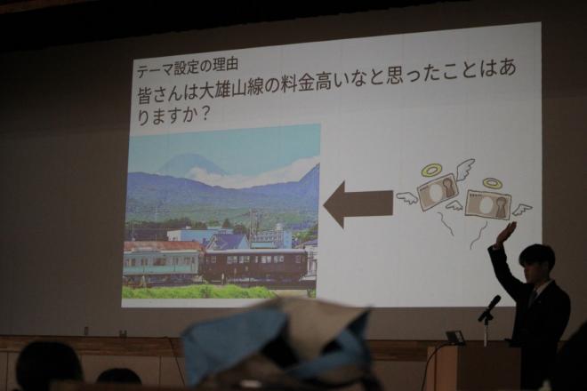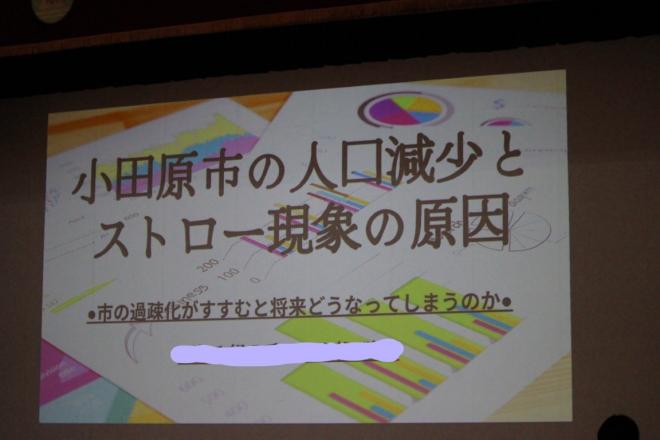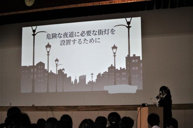 1月23日(木曜日)の6・7時間目に1年生「総合的な探究の時間」(以下「総探」)の課題発表会を実施しました。課題は、1年「総探」の中心テーマである「地域理解」を受けて、「地域の課題を解決すること」。生徒は、昨年の夏から各自で地域の課題を探し、探究テーマとして設定、それを解決する方法を探究してきました。当日は、クラス代表者として選出された生徒14名がスライドを用いて、それぞれの探究活動の成果を発表しました。発表会には、さがみ信用金庫、(株)高部金属、南足柄市役所の方にも講評者として参加していただきました。発表者の主なテーマは、「未来の南足柄~少子高齢化の課題~」「大雄山線沿いの人口を増加させるためには」「通学路に潜む【危険】を減らすには」「危険な夜道に必要な街灯を設置するためには」「小田原市の人口減少とストロー現象の原因」など、日常生活における身近な問題やこの地域で現在起こっている問題など多岐にわたりました。発表生徒たちは、自身の成果を熱く語り、その他の生徒も熱心に発表を聞きました。これまでの「総探」の活動を通じて、生徒たちは「主体的に問題を発見する力」「課題解決する力」を磨き、またその成果を発信する「コミュニケーション力」も高めています。