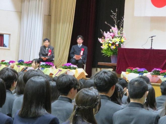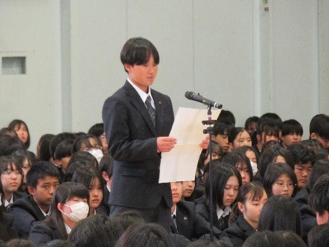 本校が普通科と総合ビジネス科の再編統合によって新たな歩みを始めてから、早くも2年が経ちました。皆さんはその変化のただ中で学び、時に迷いながらも果敢に挑戦し、本校の新しい歴史を教員とともに形づくってくれた2期生です。今日までの一人ひとりの努力と成長に、心から拍手を送りたいと思います。