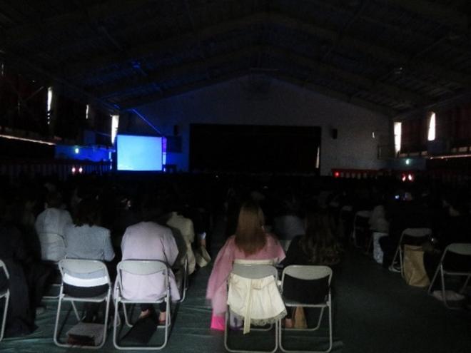 | 来賓の同窓会長【画像左】とPTA会長 | 第2部 スライドによるメッセージ交換 |