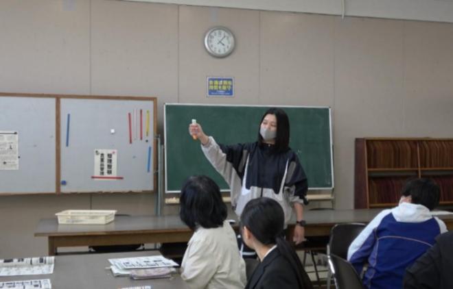 講師は、「あつぎひがし座」代表の林田洋子さんをはじめ、同座員の4名の方が務められました。伝統芸能の普及のために部活動の指導にもご尽力されています。興味がある生徒は、ぜひ見学に来てください。