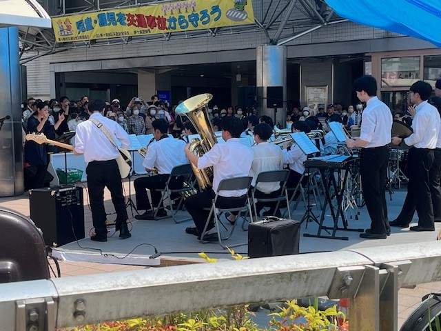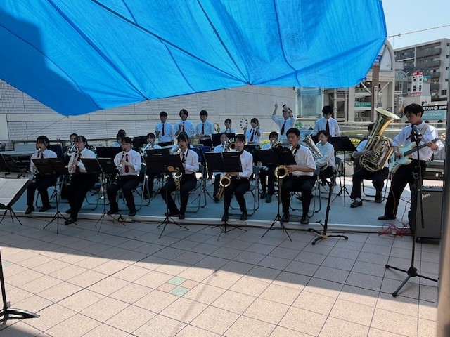 令和7年4月19日に行われた大岡越前祭に吹奏楽部が出演しました。1年生にとっては、初めての本番でしたが、みんな楽しんで演奏してくれました。夏日の中、多くの方に足を止めていただき、大きな拍手をありがとうございました。アンコールでは、サザンオールスターズの「希望の轍」を演奏しました。