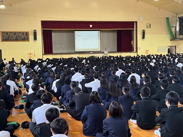 全学年を対象とした共生社会講演会を体育館で行いました。今年度は発達障害の理解を深めることを目的にNPO法人発達わんぱく会より講師をお招きし、講演を行っていただきました。