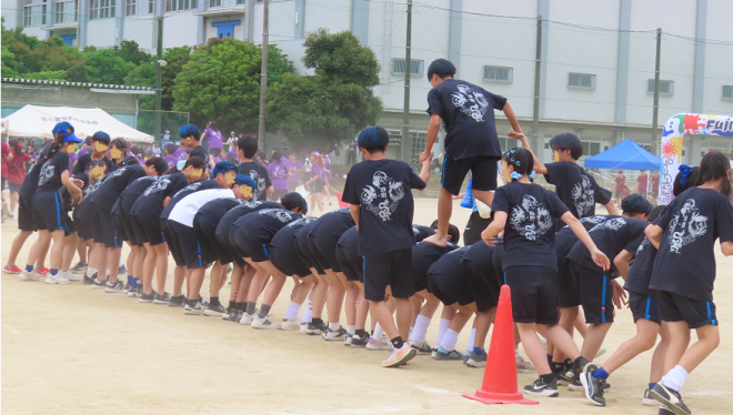 3学年協力して頑張りました。普川校長も競技を見守りました。