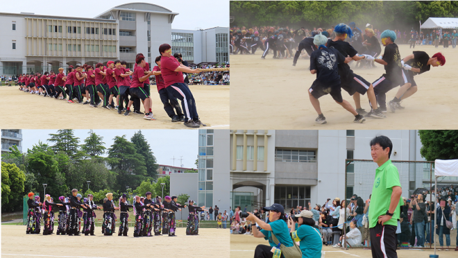 天候にも恵まれて、活気溢れる体育祭が実施されました。今年は4色に分かれての対抗戦です。