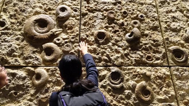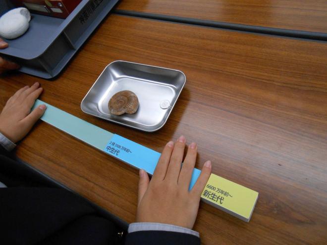 アンモナイトもミニチュアを触り、いつの時代のものか確認しました。