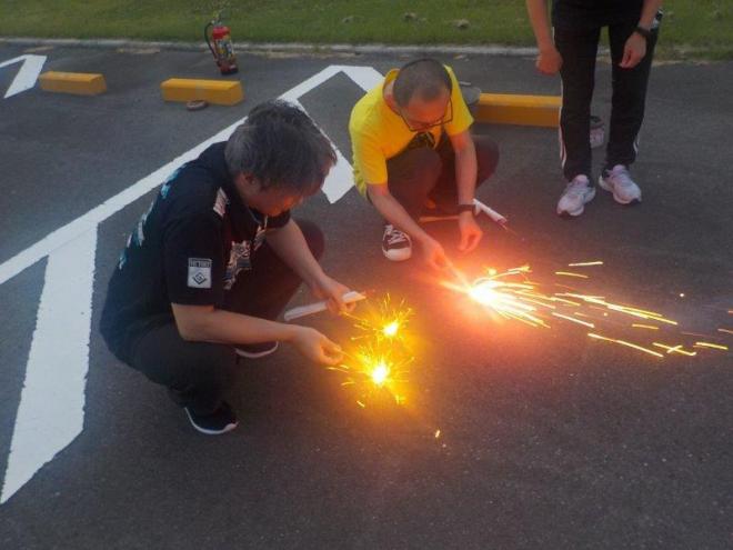 実は、雨予報だったのですが、睦会役員が短冊に「晴れますように!!」と願いを書いたところ、願いが叶って、花火をすることができました。今年の花火も、昨年同様、手持ち花火と噴出花火です。匂いと音でも花火を楽しみます。やはり、噴出花火は迫力があり盛り上がりました。