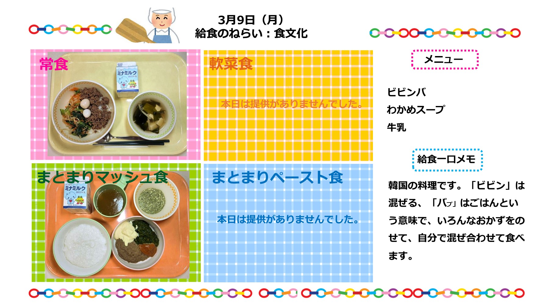 給食の写真と栄養教諭からのコメントを、このページで更新しています。