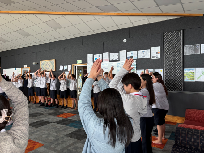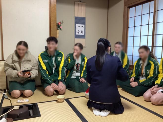 部活動体験最終日は、弓道部の体験でした。屋外の弓道場で弓を引き、日本の伝統武道を経験するとともに、熱帯地域で暮らすオーストラリアの生徒にとっては寒い屋外でスポーツをする経験にもなりました。