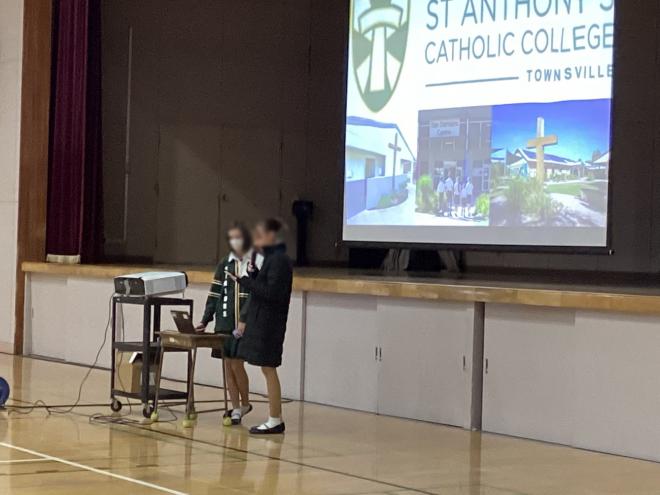 5校時に体育館で交流会を実施し、オーストラリア生徒によるセント・アンソニーズ・カソリック・カレッジについての発表や、両校に関するクイズ大会で盛り上がり、交流を深めました。