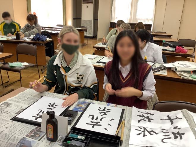 4校時に日本文化体験講座として書道講座を行いました。有志生徒がペアとなり、オーストラリアの生徒の名前に漢字を当てて、毛筆での書き方を教えました。5校時には鎌倉高校前の海岸を散策し、鎌倉高校ならではの景色を堪能しました。