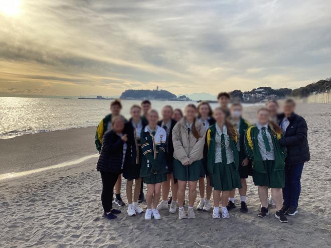 オーストラリア姉妹校一行が来日し、バディの生徒が片瀬江ノ島駅でお出迎えして対面しました。その後、江の島を一緒に散策し、翌日からの鎌倉高校訪問に向けて親交を深めました。