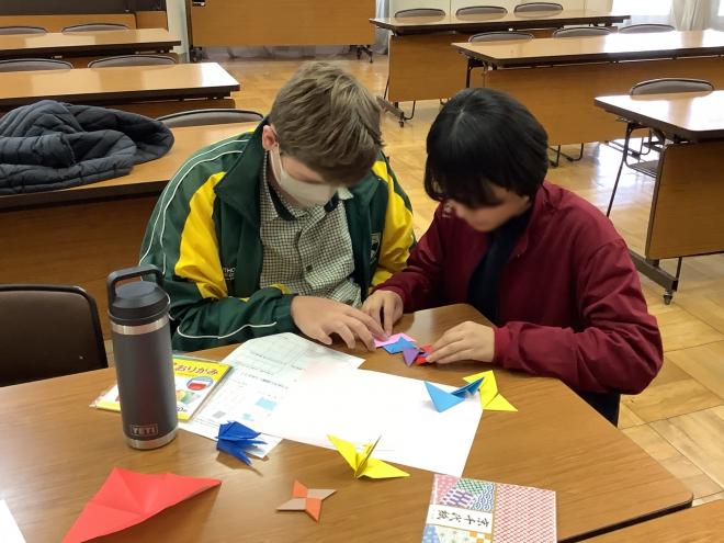 鎌倉高校で過ごす最終日、4校時に日本文化体験講座として折り紙講座を行い、有志生徒による折り紙レクチャーを受けた後、実際に折り紙で作品を作りました。5校時には最後の授業に参加し、帰りのSHRでは別れを惜しみつつクラスでの最後の時間を過ごしました。