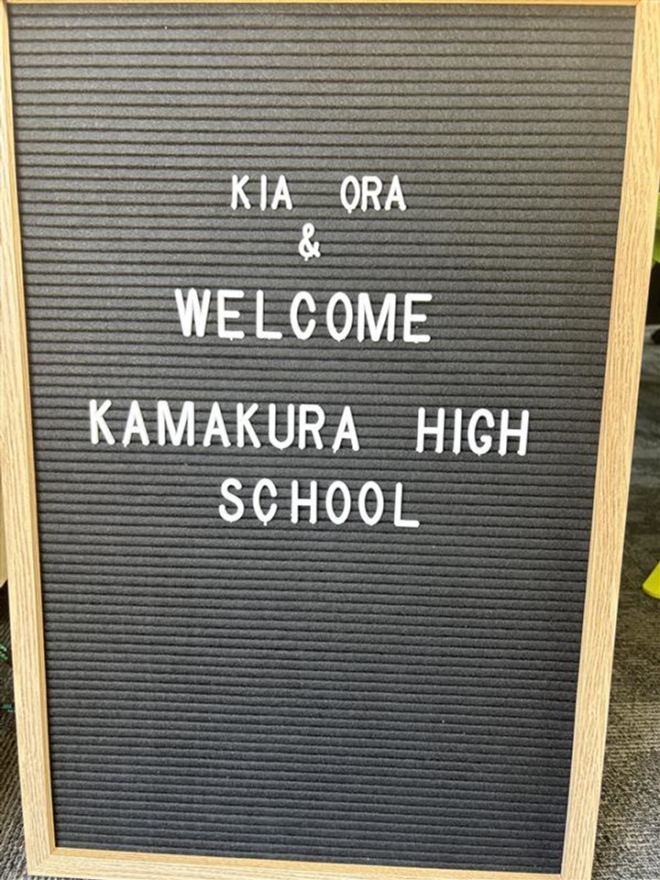 歓迎式典Welcome Assemblyで両校が挨拶をし、校歌紹介や記念品(鎌倉彫)の贈呈等を行い、各クラスに迎えられて鎌倉高校での生活がスタートしました。
