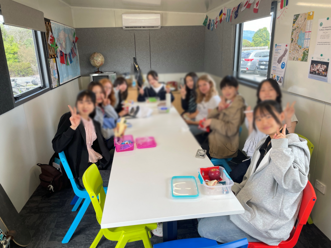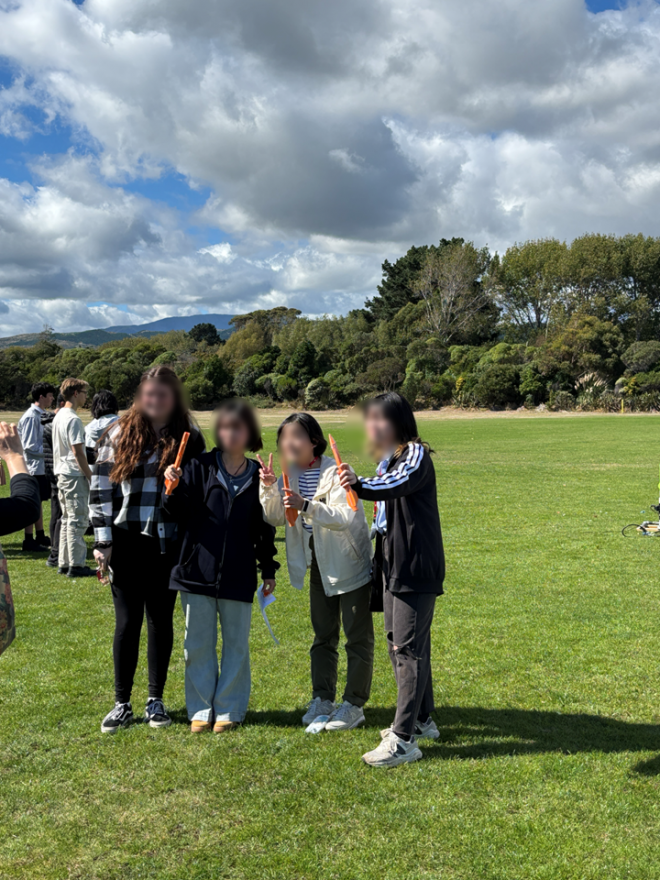 午前中はパラパラウムカレッジにて、英語で理数の授業を受けるサイエンスイマージョンを体験しました。キーウィやニュージーランド近海の巨大イカについての講義を受けた後、バディに教わりながらエアーロケット作りに挑戦しました。