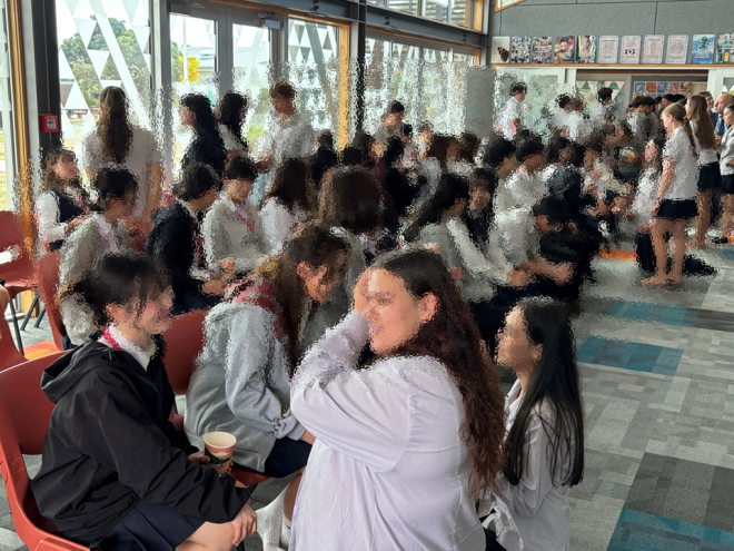 今日はマオリの伝統的な歓迎式がありました。ハカや歌を披露してくれて、こちらも校歌を歌ったり、プレゼントを渡したりして、最後は軽食をとりながら交流を深めました。