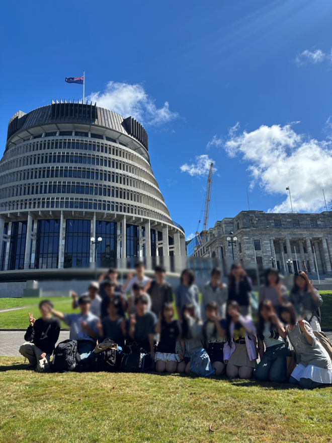 朝、ホストファミリーに名残りを惜しみつつ別れ、オークランドに移動しました。オークランド大学を現地の学生に案内してもらいながら見学しました。留学生も多く、広く充実したキャンパスに海外留学への夢が膨らんだことでしょう。
