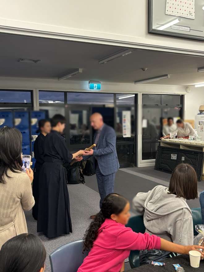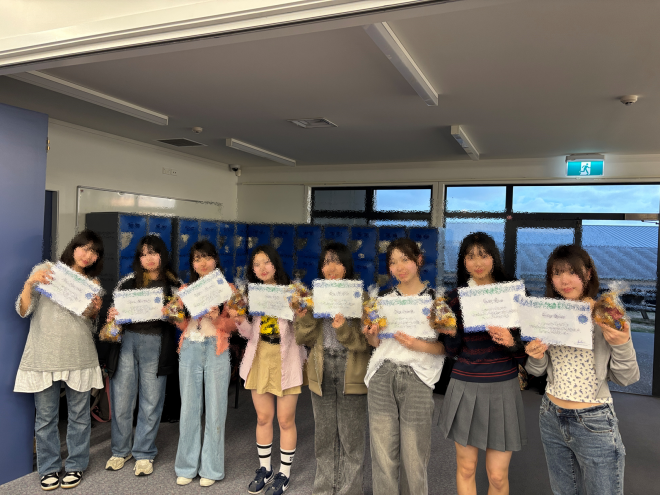その後Farewel Partyを開いて頂き、校長先生から修了証と記念品を頂戴しました。お世話になったホストファミリーとバディとともに、フィッシュ&チップスやニュージーランド伝統菓子パブロバを食べながら、楽しいひとときを過ごしました。鎌倉高校の生徒もソーラン節とを披露し、感謝のスピーチを行いました。