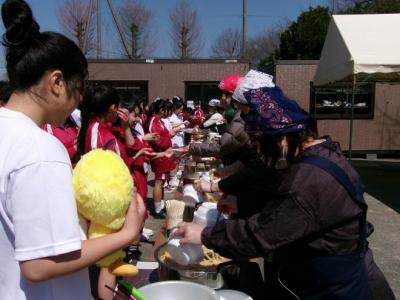 3月21日は2学年、24日は1学年の球技大会を行いました。天候にも恵まれグラウンドでは大きな歓声が上がっていました。丁度お昼の時間には、保護者の皆様から豚汁の提供があり、生徒は運動後の食事を喜んでいました。