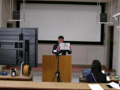体育館の耐震老朽化対策工事が行われているため、オンラインにて修了式・離退任式を行いました。私からは「終業式」と「修了式」の違いについてと新入生を迎えるにあたっての自覚についてお話ししました。大型の電子黒板の活用によって、各クラスの状況を見ながら話すことができました。