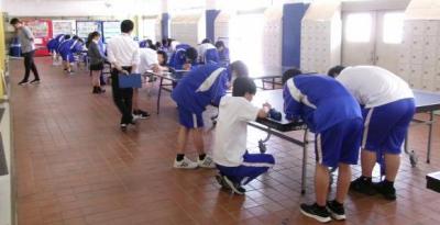 ↑卓球の授業の最後に、本時の振り返りを文章でまとめる活動