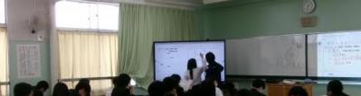 ↑生徒が電子黒板に図で答えを書く数学Aの授業