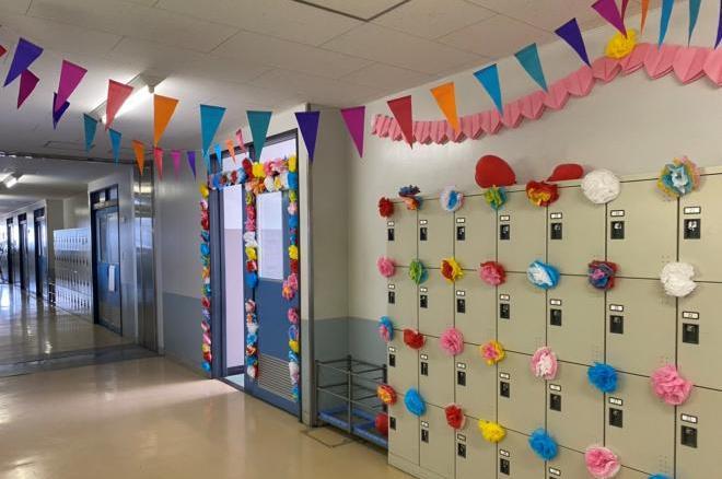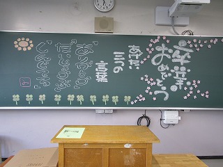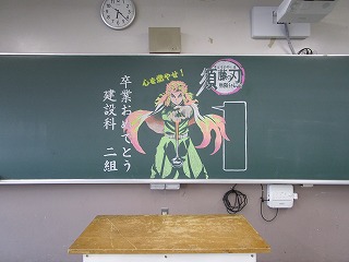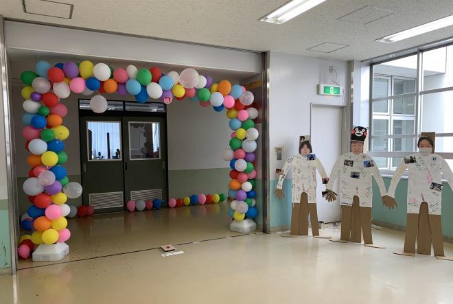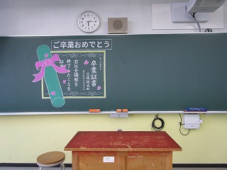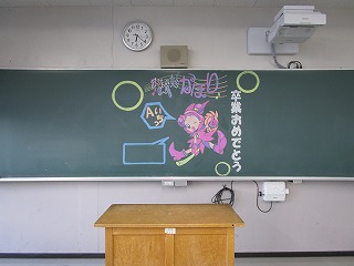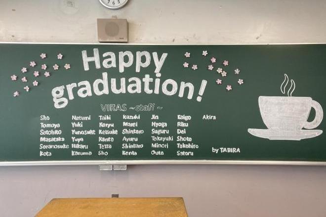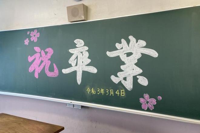 卒業の門出をお祝いするとともに、黒板チョークアートやバルーンアートで卒業式に花を添えました。