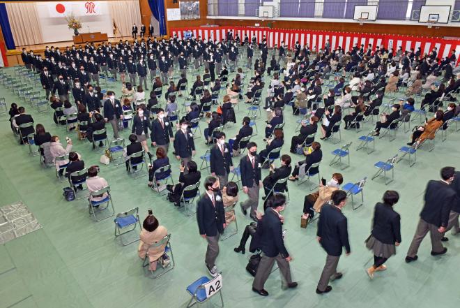 3月2日、今年度も新型コロナウイルス感染対策として、午前・午後の2部制で保護者1名の参加のもと、令和3年度卒業証書授与式を挙行いたしました。晴天のもと、神奈川工業高校の卒業生として、いろいろな思い出とともに卒業をしていきました。