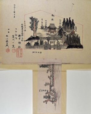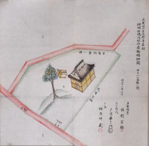 明治維新の廃仏毀釈の後、明治12年(1897)に内務卿伊藤博文が全国の神社・寺院の調査を命じて作成した「社寺明細帳」という各郡の基本台帳があります。所在地と敷地面積、建物の場所や大きさ、祭神・本尊などが文字で記録されました。
