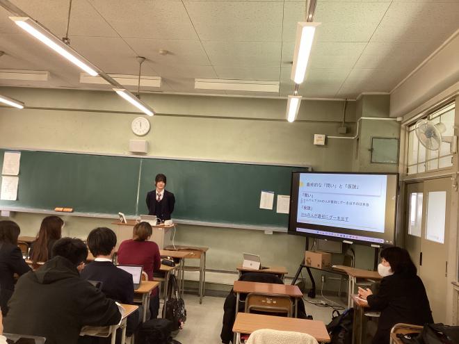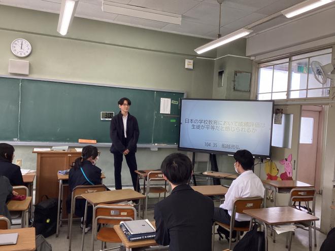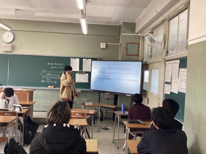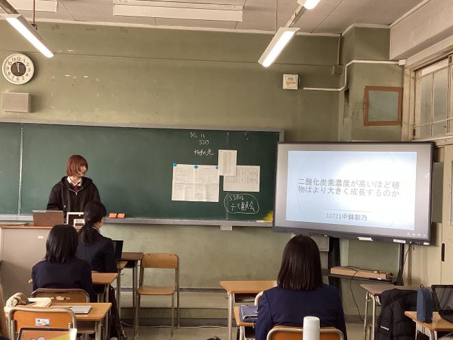 令和7年3月13日(木曜日)本校教室にて、1学年生徒による「SS Basic 課題設定発表会」を実施しました。1年間 SS Basicにおける授業で学んだことを踏まえ、自らの探究したいと思うテーマについて、問いと仮説を踏まえた課題設定を発表しました。「課題の設定」⇒「情報の収集」⇒「整理・分析」⇒「まとめ・表現」という探究活動のプロセスを踏んだ発表が多く、この1年間の成長を感じました。来年度も「理数探究」において今回のテーマ・問いを洗練させ、探究的な学びを深めていくことを期待しています。