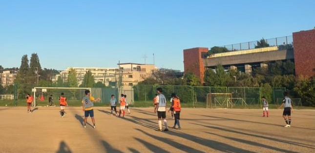 平日は基本半面で練習 。 雨の日は筋トレや体幹を中心にやっています。 土日は練習試合を行っています。また、夏には合宿を実施し、個人の技術・体力向上やチーム力の向上を目指し、トレーニングをしています。 ”いいプレーはいい準備から”をチームスローガンに日々活動しています。 |