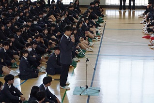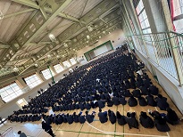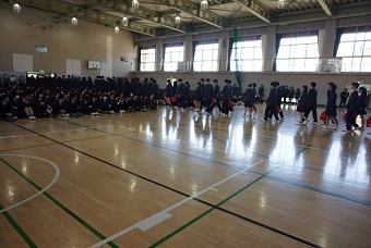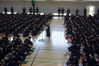 体育館に全生徒と本校内にある麻生支援分教室の生徒の皆さんも集まりました。