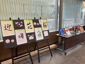 2025年2月に入学・卒業の季節感の書道部の作品展示の様子