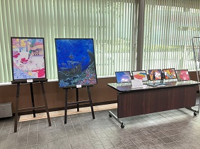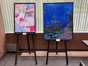 AOBAキャラバンは、2022年度より元石川高等学校文化部(美術部・写真部・書道部)が取り組んでいる、近隣郵便局での展示の形をとった地域貢献の一つです。郵便局に来られる地域の方々にも喜んでいただいています。(現在は青葉郵便局のみで常設展示)