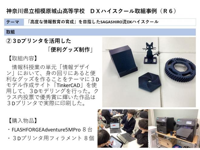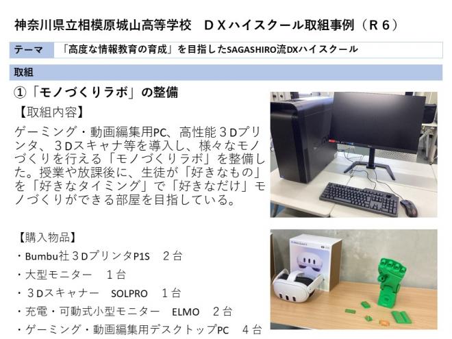 1.「モノづくりラボ」の整備 2.3Dプリンタを活用した「便利クッズ制作」
