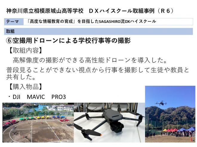 6.空撮用ドローンによる学校行事等の撮影 7.県外視察 育成する生徒像・取組による効果等
