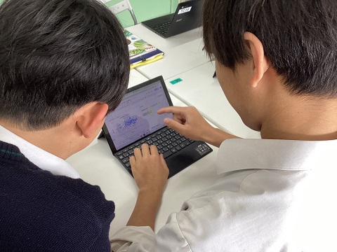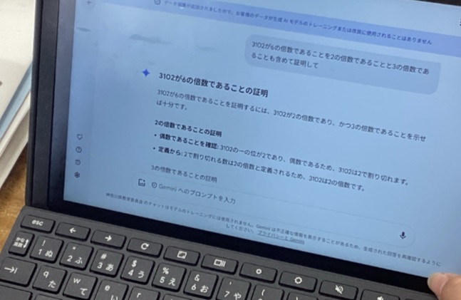 1年次の数学Aの授業では、倍数の判定について1人1台端末、ロイロノート、生成AI(Gemini)を活用してグループ学習を行いました。