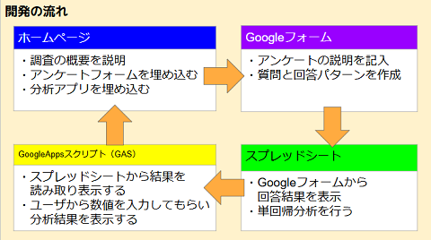 2年次の情報IIでは、「ゲームのプレイ時間と評定平均の関係性」など、身の回りにあるデータを分析するための「アンケート集計・分析システム」を開発しています。チーム内で役割を決め、Webサイト担当や分析担当に分かれて各自で開発の作業を行い、最終的に1つのアプリケーションとして完成させます。