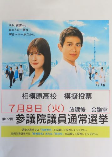 県教育委員会では、積極的に社会参加するための能力と態度を育成する実践的な教育を推進することとし、その中で政治参加に関する教育として、来る7月20日に行われる参議院議員通常選挙の日程に合わせ、実際の選挙の立候補者や政党に投票する生徒による「模擬投票」を、すべての県立学校で実施しています。
