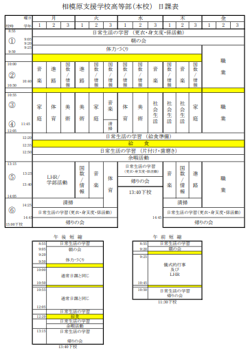 国語:生活に必要な国語についての理解を深め、伝え合う力を高めるとともに、それらを適切に活用する能力と態度を育てる。 ・話の内容の要点を聞き取る。目的や場に応じて話す。文章の概要や要点などを適切に読み取る。 数学:生活に必要な数量や図形などに関する理解を深め、それらを活用する能力と態度を育てる。 ・日常生活に必要な数量の処理や計算をする。生活に必要な金銭や時計・暦などを工夫して使う。 情報:コンピュータ等の情報機器の操作の習得を図り、生活に必要な情報を適切に活用する基礎的な能力や態度を育てる。 ・コンピュータ等の情報機器を利用した情報の収集、処理及び発信を行う。 ・情報の取扱いに関するきまりやマナーを理解し、それらを守って学習する。 |