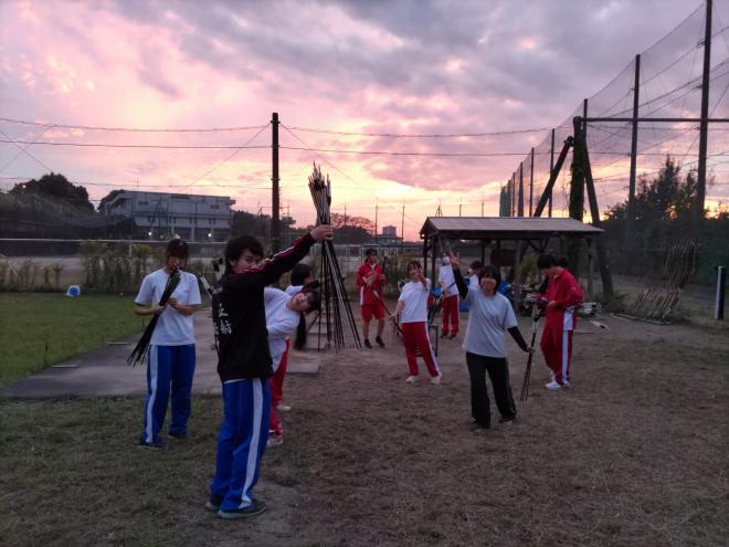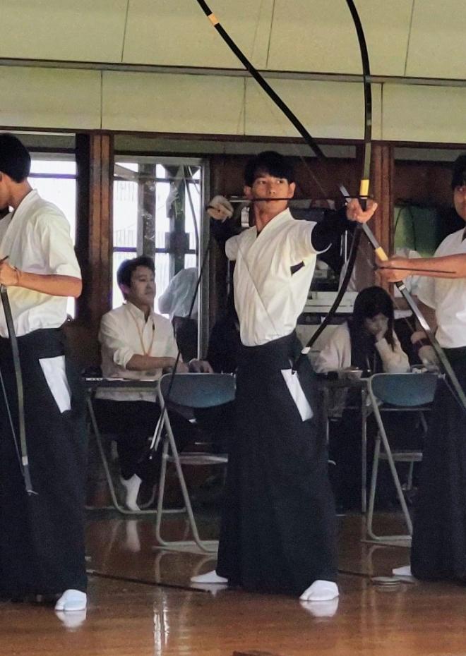 弓道部は、2年生10人、1年生11人で平日と土曜の午前中で週6日間活動しています。