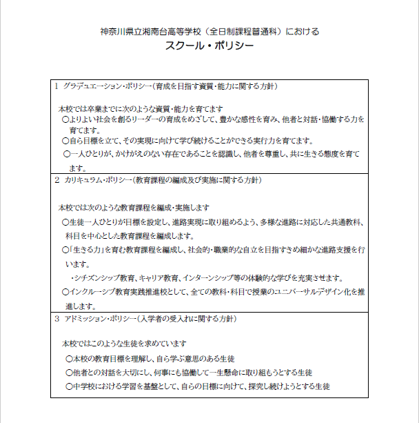湘南台高等学校 > 学校概要 > スクール・ポリシーについて