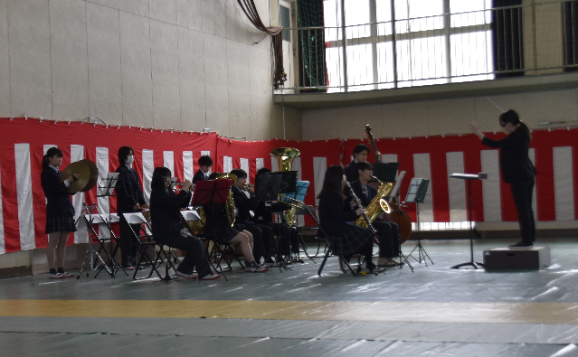 入場曲、退場曲は本校吹奏楽部による生演奏でお送りしました。