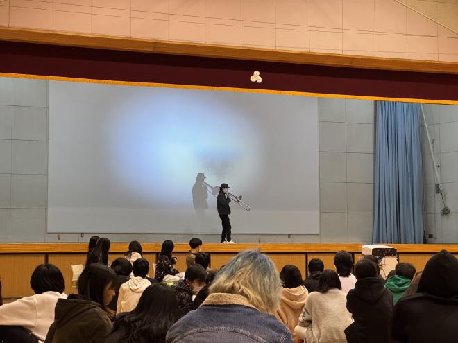 生徒会による学校行事の紹介や、部活動の紹介などが行われました。