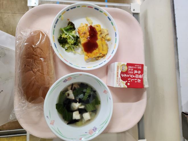 | 黒パン、牛乳、スパニッシュオムレツ、ブロッコリーサラダ、きくらげスープ |