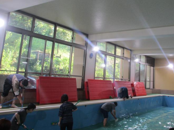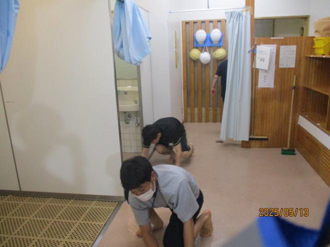 5月13日、職員によるプール清掃を行いました。少し先になりますが、プール開きに向けて児童・生徒が安全に利用できるよう、プール槽内の清掃と併せて、周囲の環境整備も進めました。