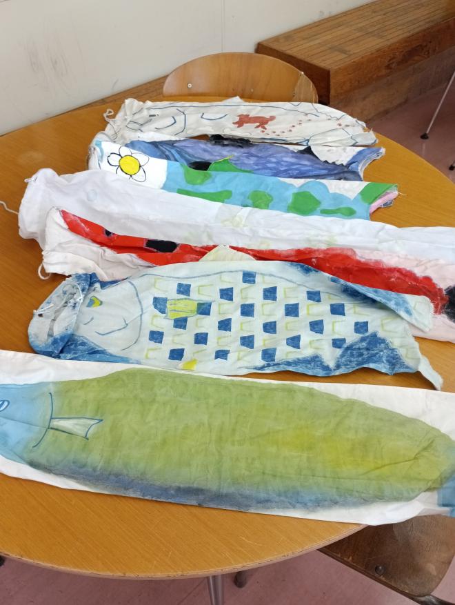 五月人形と、以前のPTAの方々がご準備されていた手作りの鯉のぼりを飾り付けました。さまざまな場面で本校PTAのみなさまには、季節の飾りつけを積極的に行っていただいております。今年度も「子どもたちの笑顔のために」を大切に、さまざまな活動を展開していきたいと思います。