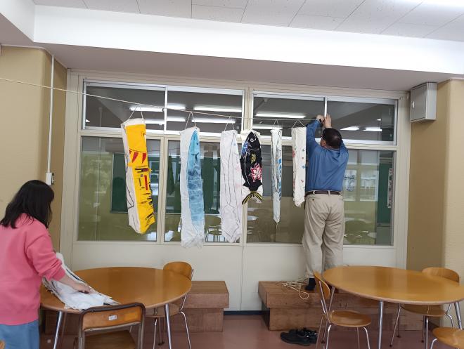 5月の連休前に、本校PTA本部の保護者のみなさまにより、ラウンジの飾りつけを行っていただきました。